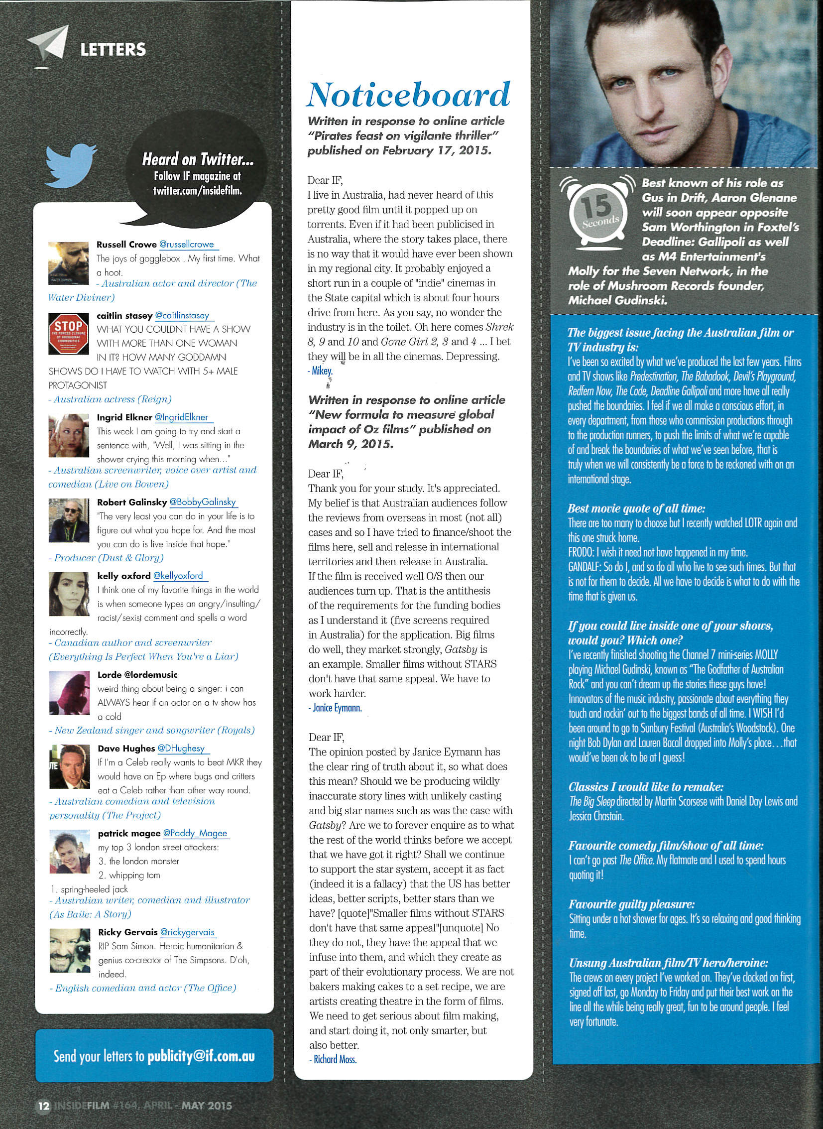Aaron spoke with Chris Hook from The Daily Telegraph about his incredible past 12 months of working alongside Robert Redford and Cate Blanchett in Truth, Sam Worthington in Deadline Gallipoli, playing the role of Michael Gudinski in Molly and his current play Orphans at The Old Fitz theatre.
